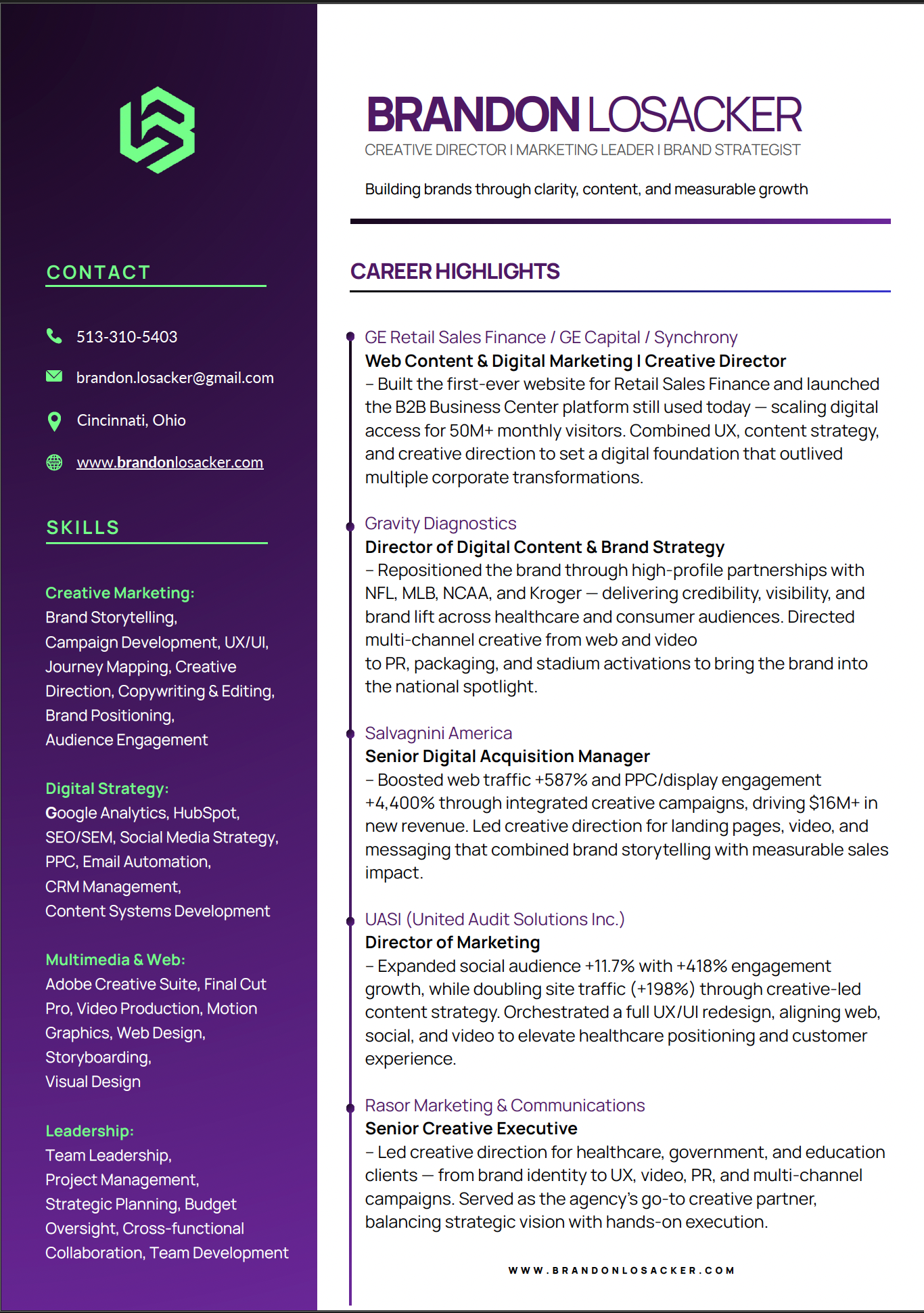 - Salvagnini America – Boosted web traffic +587% and PPC/display engagement +4,400% through integrated creative campaigns, driving $16M+ in new revenue. Led creative direction for landing pages, video, and messaging that combined brand storytelling with measurable sales impact.